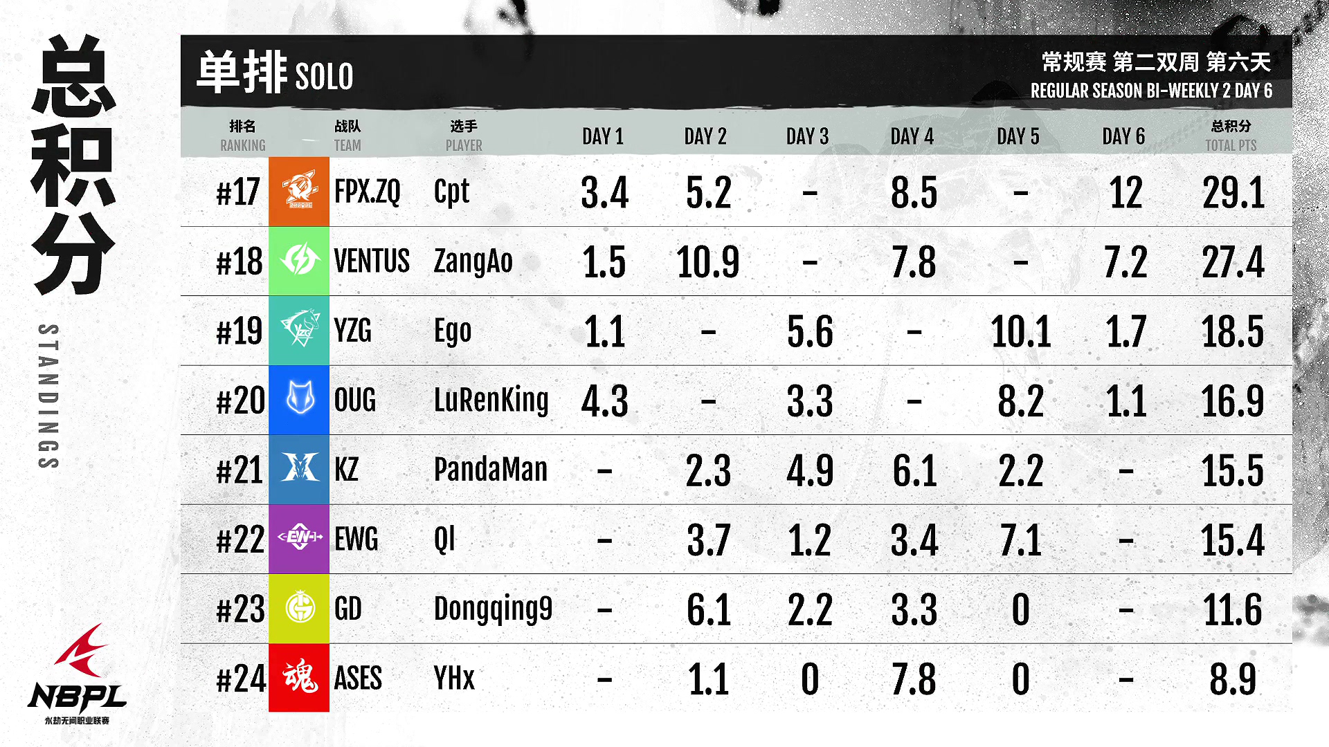 《永劫无间》职业联赛NBPL常规赛第二周6月24日正式开启第六天的比赛。今天将会有一场B/C组之间的较量。