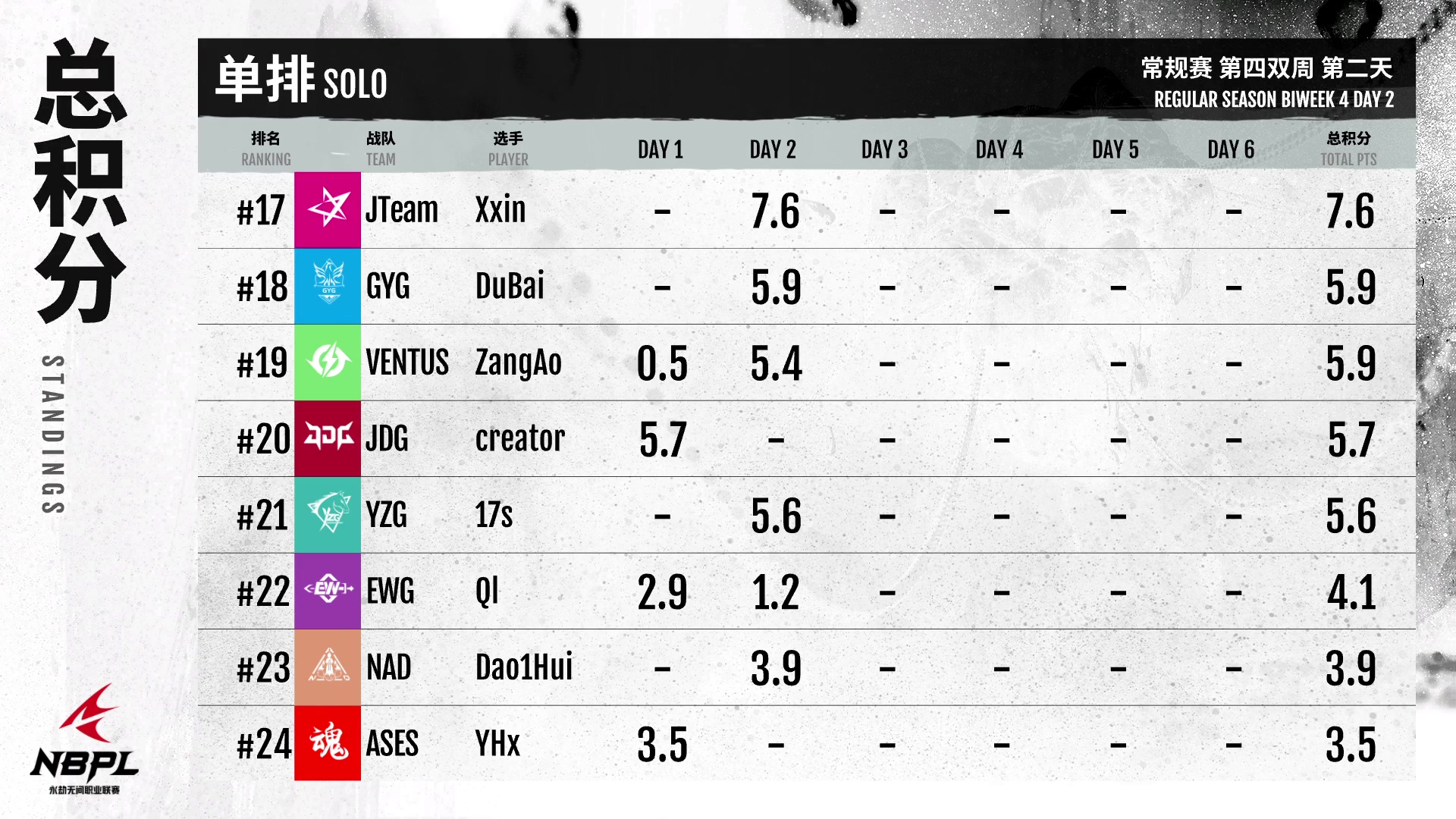 第三排,17JL这两天的状态很稳定,保持上升!看来他们找到了线下竞技的舒服状态,可以展示自己真正的实力了!今天遭受了一次小小的挫折,但正如谭所说,常规赛的目标是发现和解决问题。我相信目标明确的他们一定能成功找到自己想要的结果!Xc状态越来越勇,逐渐中和打法,他们找到了最合适的节奏,单日总得分榜第三!