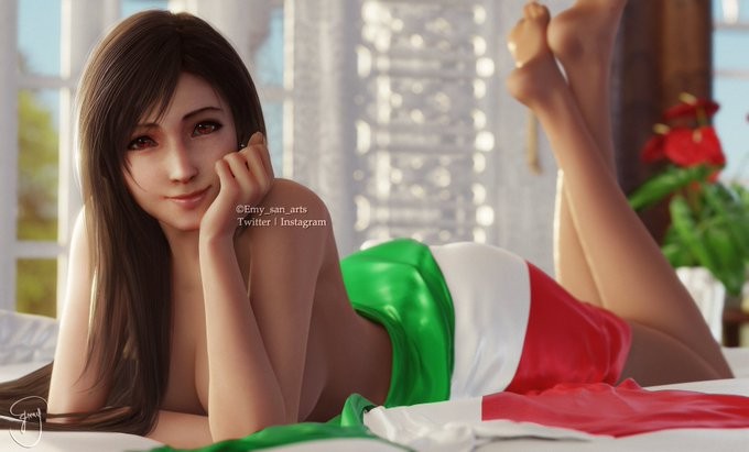 在网友的创作中,Tifa开始披上意大利国旗,穿着与国旗同色的裙子,甚至在2022年被评为意大利小姐。