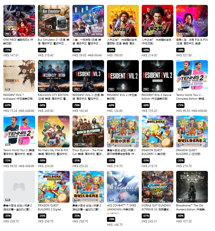 PS Store香港服务商城今日开业,春节限时优惠活动已开启。涉及各种名作。《双人成行》、《最终幻想7重制版》、《恶魔之魂 重制版》、《对马岛之魂:导演剪辑版》、《刺客信条:英灵殿》等作品都有新的历史和低折扣。折扣截止到2月9日。