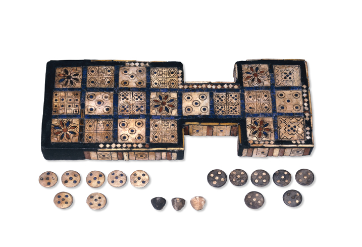 这种棋盘起源于公元前2600年的第一个王朝乌尔,是今天发现的最早的棋盘游戏之一。使用这种特殊棋盘的棋子不再存在。乌尔陵附近还出土了几套镶嵌页岩和贝壳的棋子和棋盘。棋盘中间是空的,但里面有棋子。