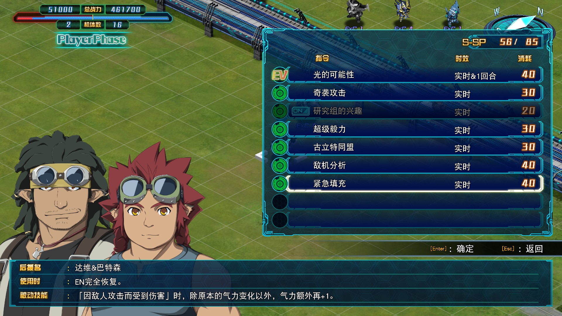 而且,作为机战一大特色的——精神指令系统,几乎只有玩家发动,敌人是默认不存在的系统。 在强大的精神指令下,即使存在数值极高的敌人单位,最终也会成为我方人海战术的沙包,强度微乎其微。