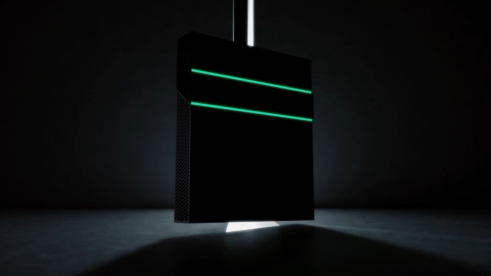 Xbox Series X Elite的两侧有绿色的LED光杆,电源按钮更大。 Xbox徽标位于左侧,有蓝光插槽、弹出按钮和4个USB连接器。
