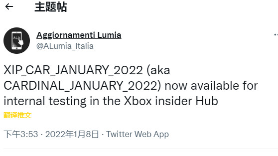 Hub ),通过推送ALumia_Italia,可以始终关注微软代码的名称。 他最近发现,代号为XIP_CAR_JANUARY_2022的产品可以在Xbox内部中心看到。 这里的CAR是微软《帝国时代4》内部代码Cardinal的简称。