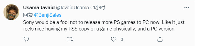 Javaid回答说:“如果索尼现在不把更多的PS游戏带到PC平台,那就是傻子。现在PS5游戏的实体版在手,还有PC版,简直酷毙了。”
