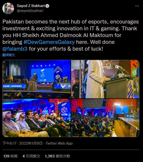 PTI领导人佐勒菲布哈里在推特上说,巴基斯坦正在成为下一个电子竞技中心。