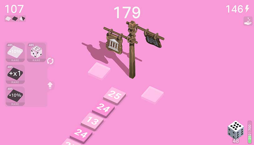 每掷一次,揭示地砖并获得积分以提升其价值。