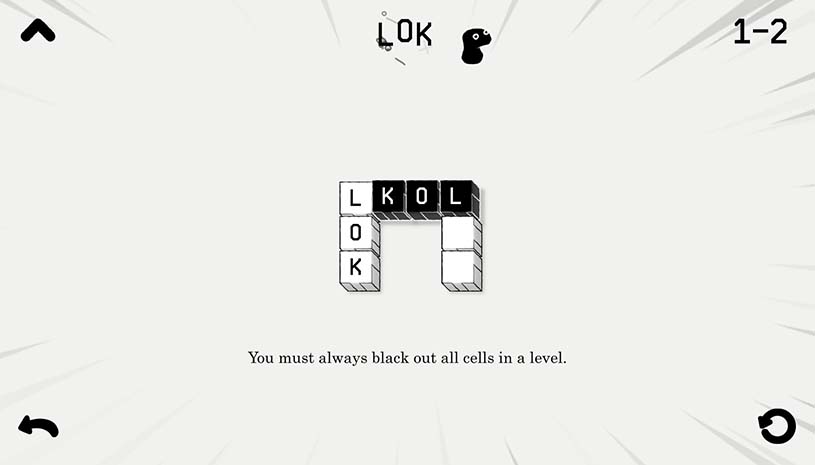 每当你拼出魔法咒语,名为LOK的生物就会诞生。它们只能生活在涂黑的方格里,由此一来,每解决一道谜题,你都是在帮助它们开疆拓土、散播文明。