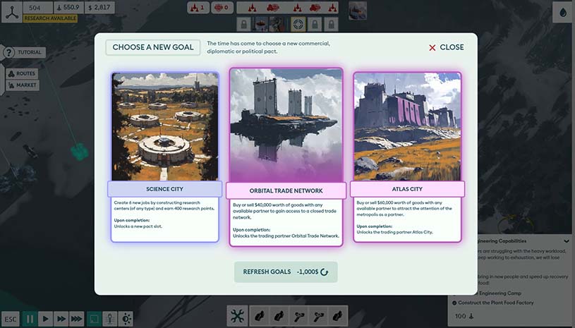 采用协议和目标来暂时或永久地改善你的殖民地。谨慎选择,因为这些重大决定只能偶尔做出。