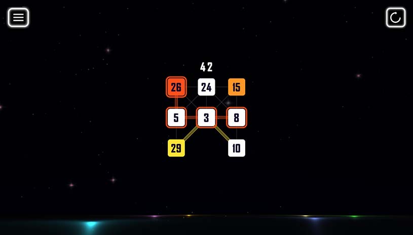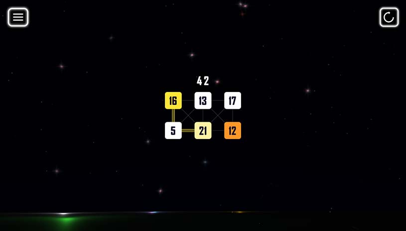 您应该找到一个或多个组合,每个组合都可以将42加起来,就像彩色方块中所示。