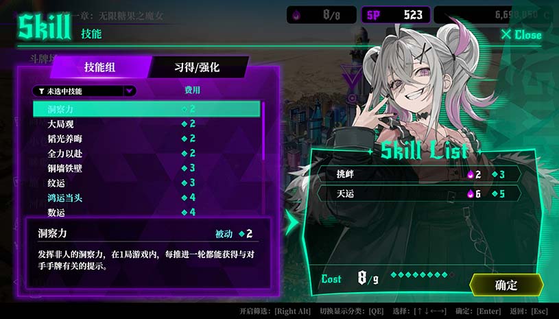 使用技能可以控制手牌的牌型、看穿对手的手牌等,让牌局对自己有利。