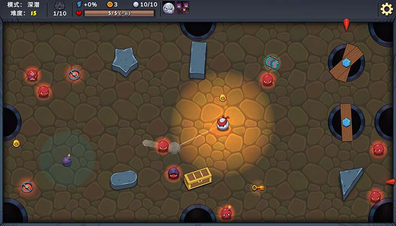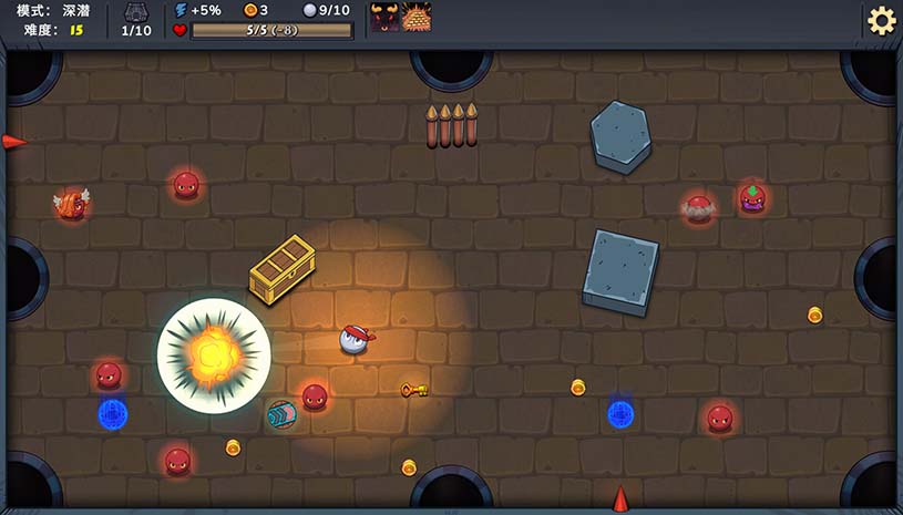 强重复可玩性:程序生成的地牢构造,随机的敌人、障碍物和强化组合在一起,再加上超过100种物品,意味着每一局都会非常不同!