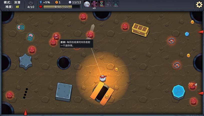 独特的玩法:基于物理交互的台球肉鸽地牢战斗游戏!