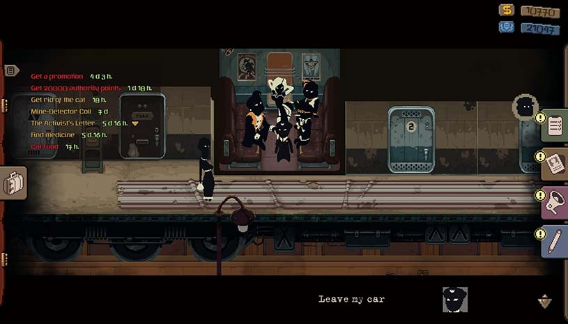 获取进出餐车或高层官员、大亨乘坐的贵宾车厢权限。盯住你的同事,发现他们受贿或运送禁品时上报事件。部门会感谢你的付出。