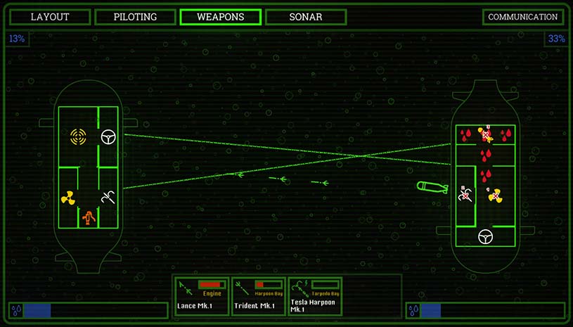 直接掌控潜艇上的驾驶、武器和雷达系统。升级你的潜艇,扩大甲板,投资不同的舱室。与敌方舰艇谈判,但要随时准备好迎接战争。