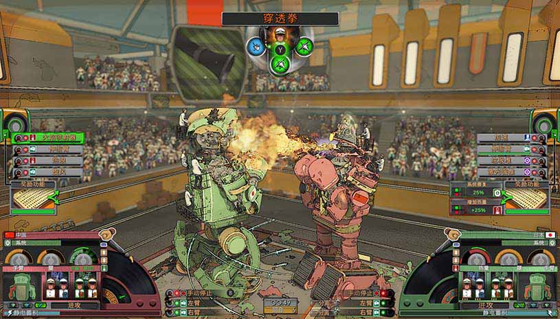 机器人的组件可能会在对手的重击下受损甚至损坏。幸运的是,你可以利用中场休息时间进行修复。同样,在战斗中晕眩的队员也会在休息时间苏醒,恢复他们提供的角色特定加成(如船长、驾驶员、武器或系统)。