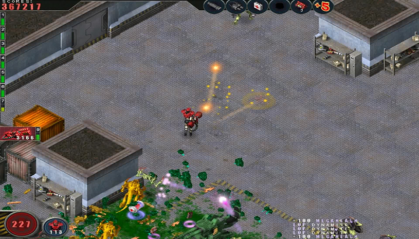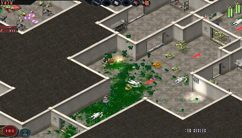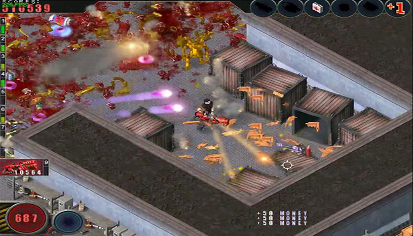 孤胆枪手是一款斜45°角的第三人称动作射击游戏,游戏的主要场景在黑暗阴森的军事基地里,这里已经被各种各样恐怖的怪物所占领,你必须拿起武器,勇敢的消灭血腥的怪物,才能取得最后的胜利哦。游戏分两种模式,过关模式和时间模式,游戏中可以获得MONEY,用作下一关购买更好的武器弹药,也可以用来升级你的能力值。操作方法:W S A D为上下左右,1-9换不同的武器,鼠标左键射击,按右键也可以行走。