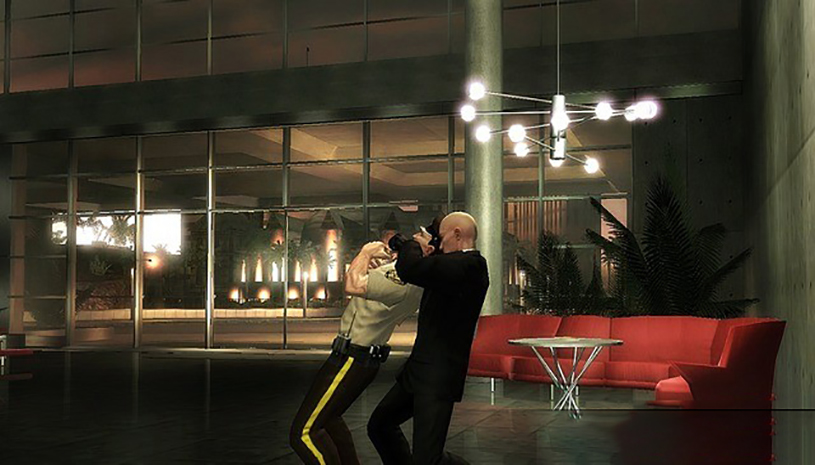 随着《终极刺客:契约》(Hitman:Contracts,后文简称HC)的热卖,这次系列在全球已经卖出了1000万份,成为了Eidos名下销量最好的游戏之一,Eidos也越来越重视这棵“摇钱树”,距离HC发售不到5个月时间,他们很快又公布了新作的消息,它就是《终极刺客:血钱》(Hitman:Blood Money,后文简称HBM),游戏依然交给丹麦制作组IO Interactive开发。由于受到Eidos被收购风波的影响,HBM的开发严重受阻,发售日期也由原定的今年春天推迟到今年年底。与HC的高自由度相比,HBM在玩法上又有了新的突破…… “代号47”成被猎杀对象 众所周知,“代号47”是基因工程的产物,拥有各种残酷的杀人技巧与暴力因子,受雇于杀手集团ICA,经常执行各种难度不同的暗杀任务,《终极刺客》系列的前三作正是讲述了“代号47”所经历的种种暗杀行动,但在HBM中,“代号47”却成了其他杀手猎杀的对象……ICA面临着空前的劫难,一个更强大的杀手机构正在兴起,并且试图剿灭整个 ICA,而 ICA 的成员也接连遇害。“代号47”在一次平常的行动中突然与 ICA 失去了联络,他预感到自己将会成为下一个目标,于是决定前往美国找出事情的真相。HBM一共有十三个任务,在任务数量上远胜于先前的三款作品,而且绝大部分任务的地点都设在了美国,仅有一个任务发生在法国巴黎,“代号47”必须在巴黎歌剧演出的排练期间暗杀目标,可以用枪直接杀死目标,也可以让吊灯落下砸死目标。每个任务都会有几个暗杀目标,这些目标不再是任人屠杀的肉靶,而是更凶悍的杀手,要先暗杀谁?如何暗杀?这些全由玩家自己决定。 由于成为了其他杀手的猎杀对象,“代号47”在执行暗杀任务时还要惕防其他杀手,避免出现“螳螂捕蝉,黄雀在后”的情况。虽然“代号47”在任务中可以乔装成任何人,但他只了解暗杀目标的模样,并不知道是否有其他杀手混了进来,也认不出哪些人是杀手,或许两人在一些场景中会擦肩而过,而其他杀手却能认出“代号47”,因此“代号47”随时都会有生命危险,但玩家根本不必担心会突然跑出一个杀手,明目张胆地将你干掉,因为对方也是杀手,尽管知道目标是杀手,他也要进行暗杀,这就是杀手的职业本能。在拉斯维加斯的一间酒店里,你暗杀完目标,为了制造混乱而拉响了火警,强迫旅客离开房间,朝向电梯跑去,如果你跟着他们一起搭电梯离开的话,那你将死于电梯处,因为某个杀手在电梯附近安置了炸弹,正等着你前来……