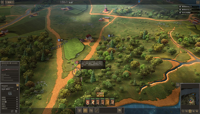 加强版单位控制: 你可以差遣散兵队去侦查前方那些山丘。或是集结大量旅团编制成一个大型师团,如果有必要。让马队下马,变为马队步战队,从而更难被敌方发现,或是发动一个快速的侧翼冲击,抢掠敌方后勤补给。补给在游戏中的位置无足轻重,你必须谨慎策划补给线并提供保护,否则战役将会被逼早早完毕。