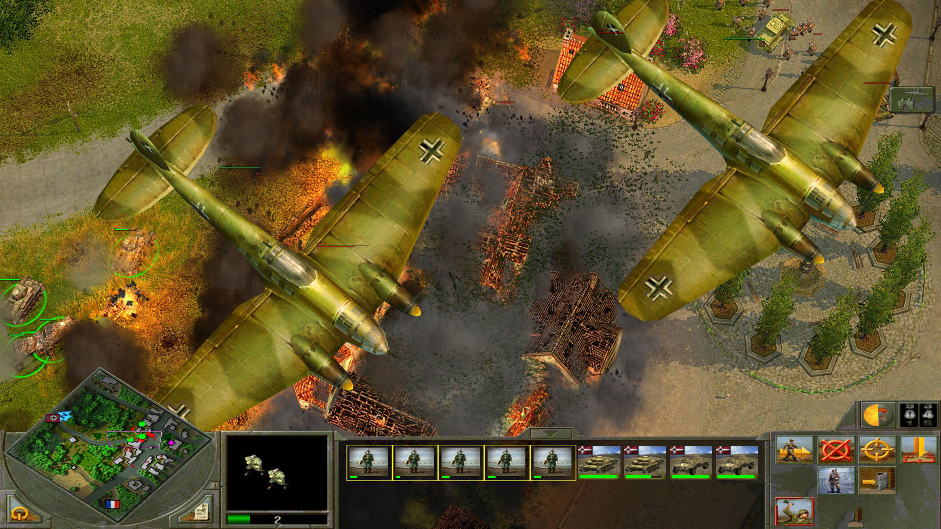 《闪击战2》是以二战为主题的即时战略游戏,游戏以快节奏的战略战术给人留下深刻印象,曾在E3中获得了最佳策略模拟游戏奖,在国内外玩家中也引起很大的反响。《闪击战2》早在2003年1月就已经开始开发,游戏借助全新的游戏引擎将二战带入全3D的环境,玩家可以操纵王牌飞行员在广阔的战场上纵横,玩家还可以呼叫援军比如战机或战舰。 《闪击战2》的任务分为美国、苏联这两个部分,包括了太平洋战争,它们大多以真实历史为基础。任务系统从以前的单路线变成现在的双路线,你只能走其中一条路线,路线引导的任务将会不同,游戏的可玩性得到提高。在一些非历史任务中,会出现拥有特殊能力的英雄单位,它能突出二战领袖的力量。 《闪击战2》里可控制的作战单位将达到300个,分为60种不同的类型,海军和可操作的空军也会首次出现在游戏中。这些作战单位还将由真实数据造成,大部分数据与一代相同,有些的能力被改变,有些则被增加了能力,它们能通过战斗来增加经验、提高等级。游戏增加了采集资源系统,它能利用资源来提升部队的能力。《闪击战2》采用了全3D的图形引擎,建筑物、场景、作战单位的模式被设计成3D模型,天气变化会影响军队的行动,它们共同构造了一个真实的战场。这个引擎带来的不只是画面上的改变,更重要的是,电脑AI进一步提高了,敌人会寻找你队列的弱点,会清除布雷区,并且聪明地指挥空军,你会在游戏中面临更困难的挑战。在多人联线模式中,玩家可以通过服务器进行一个新增加的多人模式和使用玩家等级系统。 扮演二战强国,陆海空三军齐出战,全计共有超过60场战斗任务、250种武器,空军飞机可以手动控制,带给玩家统率三军的权威感。全新的“增援系统”考验调兵遣将能力,“增援系统”,游戏中任何时候皆能呼叫援军前来协助。新加入分支任务系统,可以赚取经验值及取得各种不同的增援部队,提升攻略正规任务时的战斗力。阶层分明、官阶越高、部属越多、战术越精,为努力奋战的你设定了升迁系统,初始为“中尉”军衔;下属军官经验值越高,指挥官的地位也越高。军衔提升会增加新的“战术技能”,如“自动导航”及“间谍”;没有指派指挥官的部队,无法使用战术,永远是初级战力。