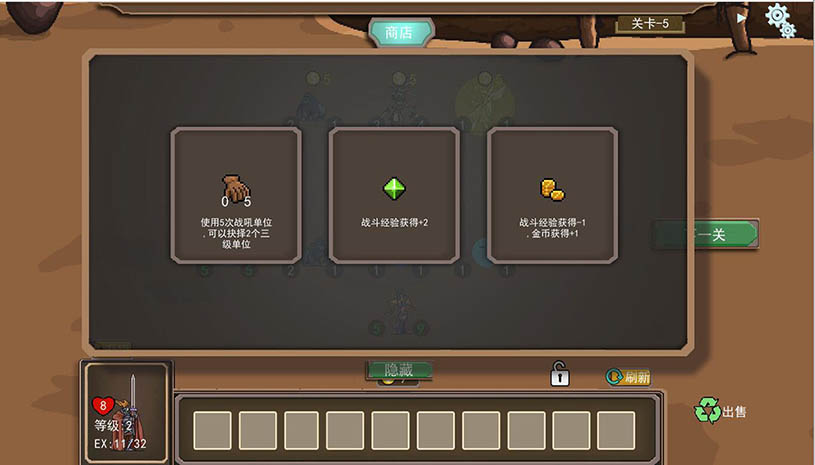这款游戏的主要玩法,就是购买棋子,组成一个强大的阵型,挑战更高的层级.取得奖赏,再次强化你的阵型