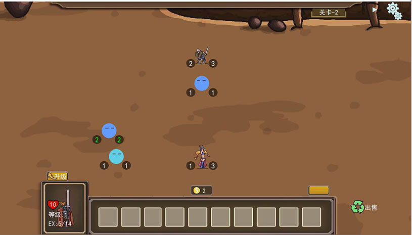 玩家和电脑都是10个战役格子,分成前后两排,前排的单位先攻击,也会优先被攻击