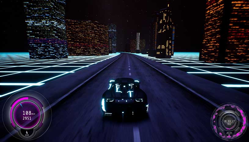 当您的超级跑车以正确的速度加速并且迎面吹来风时,您将不想停下来。 这将类似于预测未来——80 年代的邪教电影和音乐所唤起的感觉。 您很快就会意识到,霓虹灯泛滥的高速公路上的配乐和运动构成了一个整体。