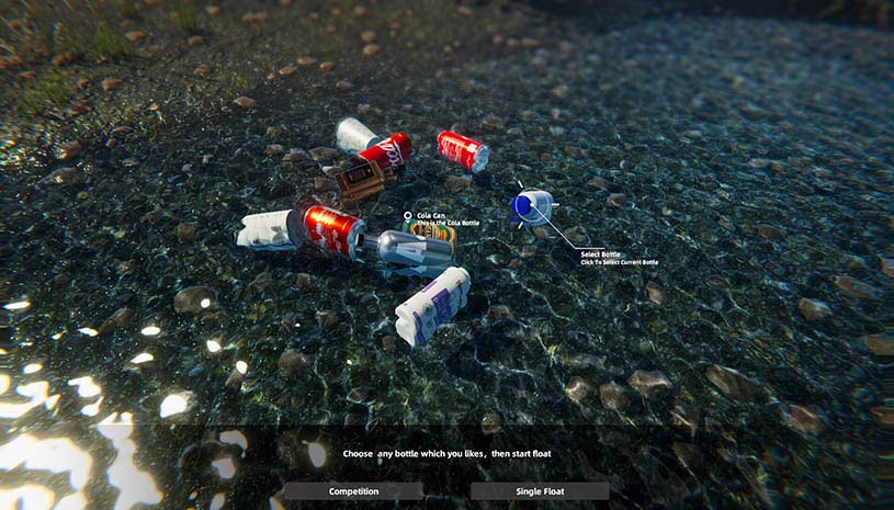 《瓶瓶罐罐飘》(Bottle Can Float)是一款令人放松的休闲游戏,游戏中你将选中一个瓶子沿着河流顺流而下,它将会沿着流水自由漂浮,你可以做的就是通过投掷小石块来影响瓶子的走向,而且河流中隐藏着不同的小动物,你可以通过寻找这些内容来让漂流变得更有意思,希望你能在潺潺的流水声中放松心情,获得愉快的体验。