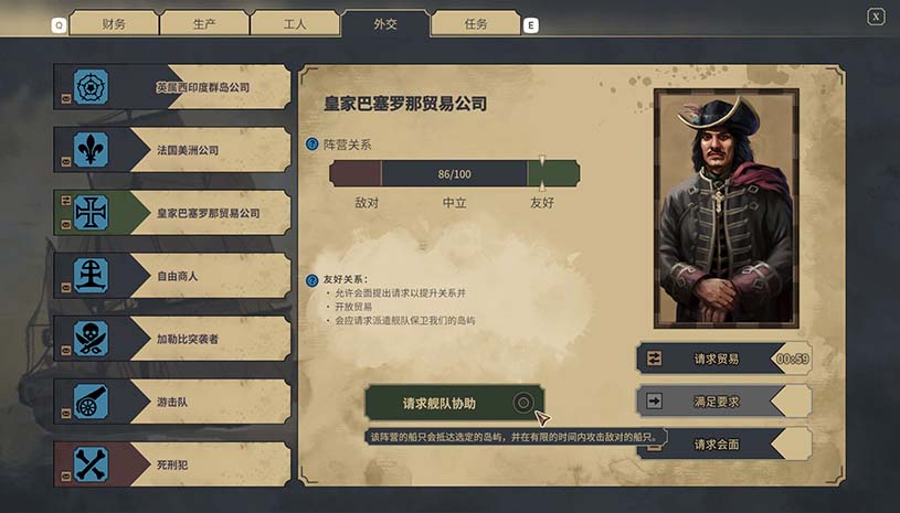 开展外交——与当地海盗团体和势力庞大的国家贸易公司建立和管理动态关系。庇护对手,建立同盟,在复杂的外交关系网中,任何行动都无法掩人耳目。