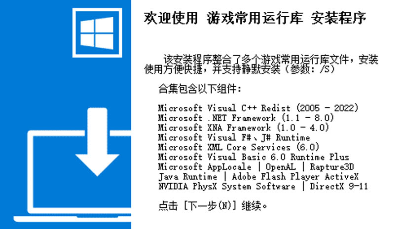 游戏常用运行库 合集 整合了许多游戏会用到的运行库,支持 Windows XP – Windows 11 系统,并且支持自动检测系统勾选推荐的运行库,方便快捷。基本能解决99%游戏无法打开的问题!