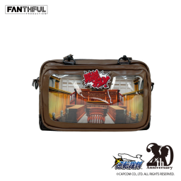 拉链上还精心装饰了游戏标题中的闪光元素,内衬上也是满满的“Objection”印花。还有两条肩带满足斜挎和单肩的选择。