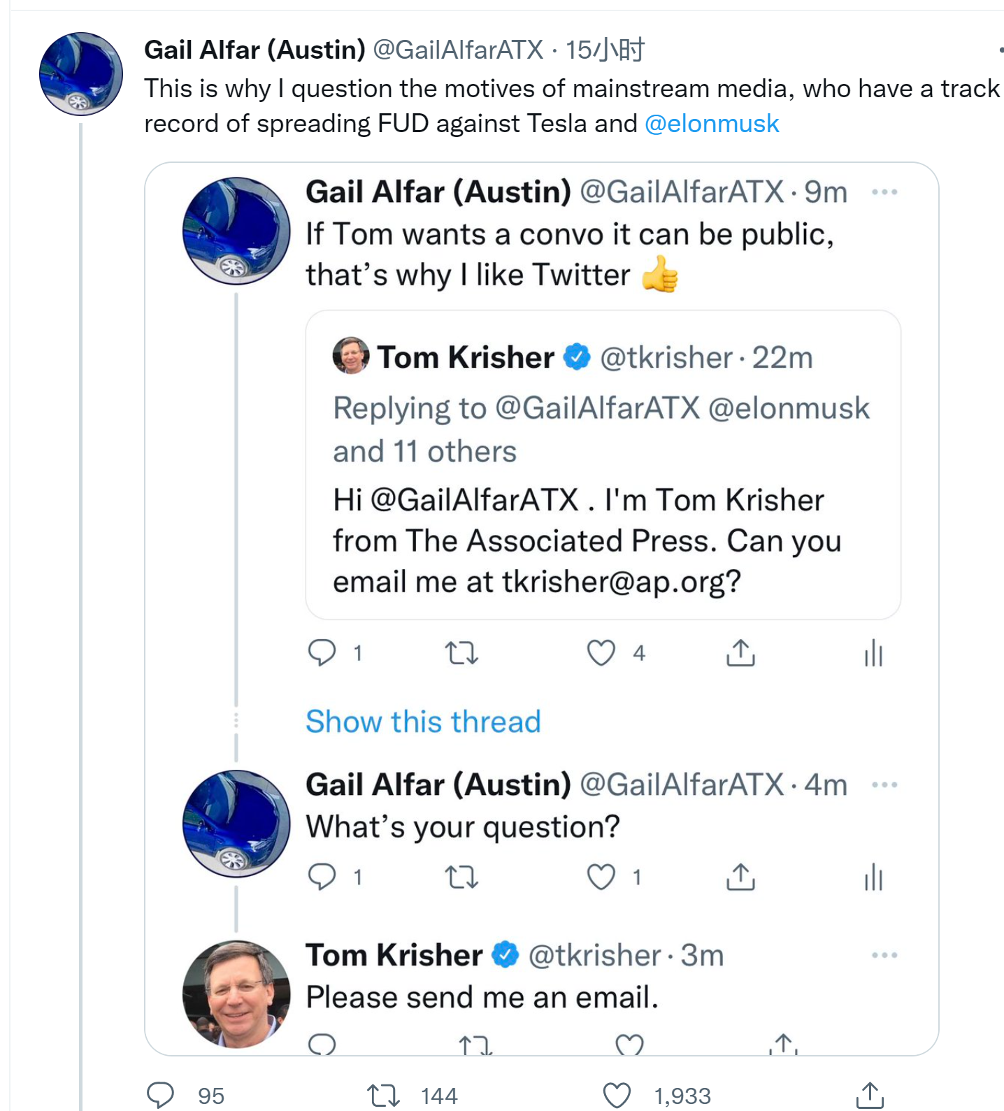 马斯克是在回应一位特斯拉车主的推文时说这番话的。车主质疑主流媒体的动机,称这些媒体有传播FUD(恐惧、不确定和怀疑)反对特斯拉和马斯克的记录。