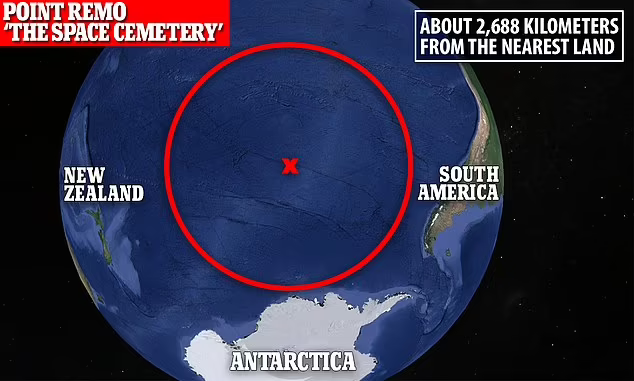 多年来,尼莫角一直是数百个空间碎片坠落的地方,距离新西兰东海岸约3000英里(约4828.03公里),距离南极洲北部约2000英里(约2000英里)
