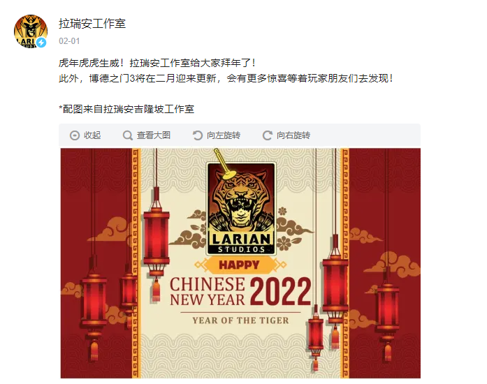 这位官员在哔哩哔哩给出了答案。在中国农历新年之际,拉赞工作室不仅在哔哩哔哩向中国玩家拜年,还透露将于今年2月发布新的更新,暗示会有更多惊喜供玩家探索。最近一次更新是大约3个月前。从时间线来看,这个更新应该是正确的。然而,是否有任何实质性的更新还有待观察。