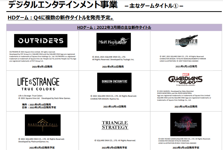 《OUTRIDERS》,《NieR Replicant ver.1.22474487139...》,《Marvel’s Guardians of the Galaxy》等等。