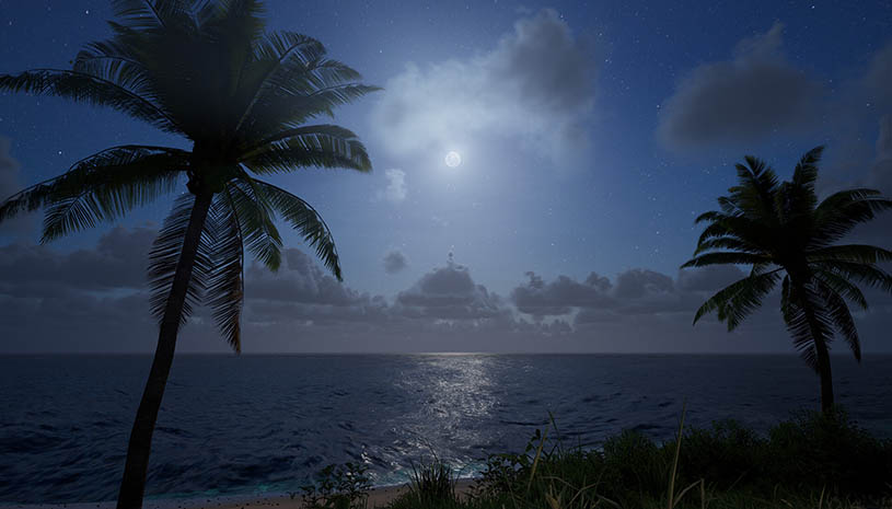 昼夜循环天气系统:实时动态天气,写实的3D体积云天空,风力系统,雷雨天、晴天、多云天气自然变化,如身临其境。