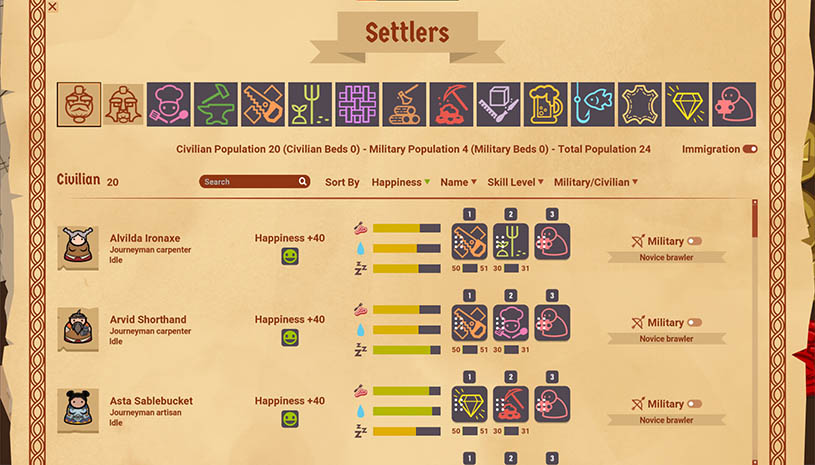 初始拥有7名矮人,但随着游戏的发展能够多达成百上千