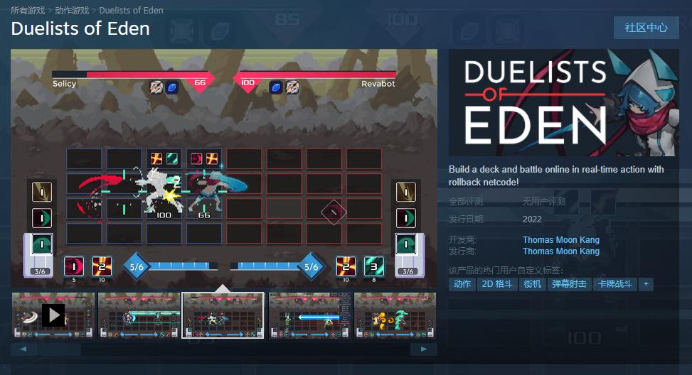 开发商Thomas Moon Kang公布了《伊甸之路》续作的《伊甸决斗者》,这是一款基于卡牌的2D格斗游戏,现已上架Steam,预计2022年发售,暂不支持中文。 ...