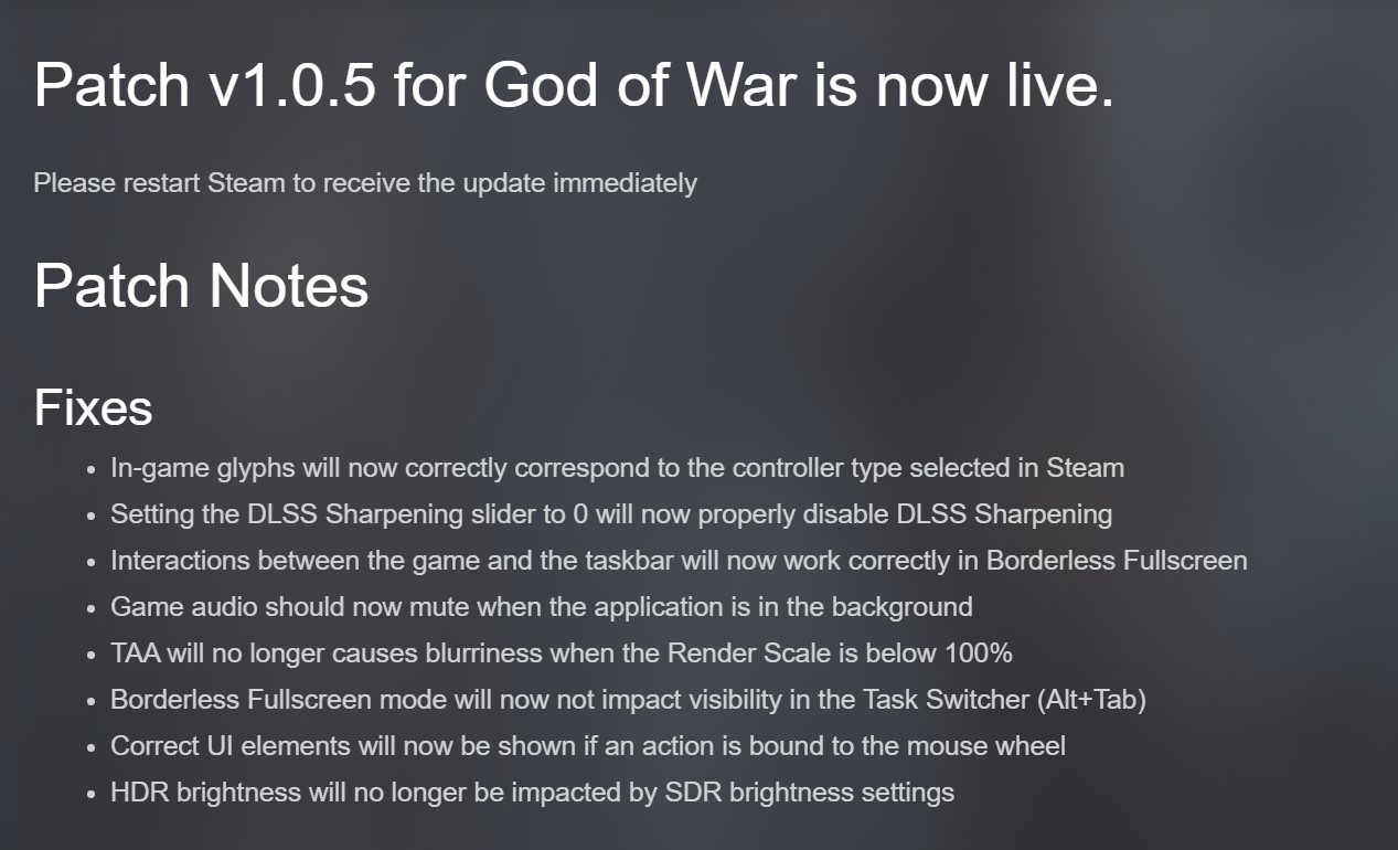 《战神4》 PC版1.0.5补丁上线啦!AMD的性能问题以后会解决。