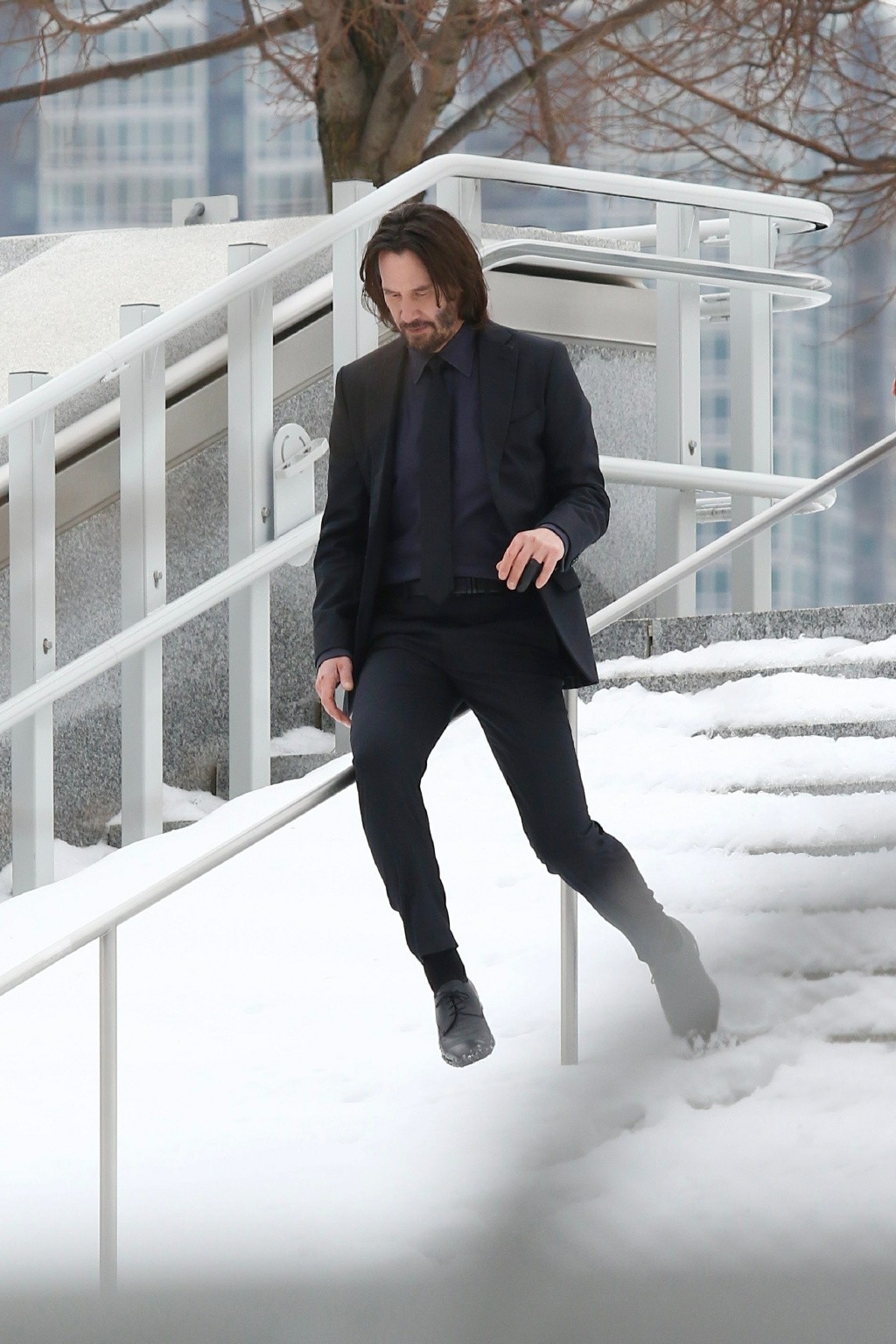 《疾速追杀4》新摄影棚照片基努里维斯在雪地里行走