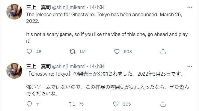 《幽灵线:东京》即将在3月25日正式发售,今日三上真司用日文和英文发推,亲自宣传这款游戏。三上表示,《幽灵线:东京》不是一个恐怖游戏,如果你喜欢它的氛围,就去玩吧。值得一提的是,根据早先的报道,《幽灵线:东京》原计划是《恶灵附身3》。 ...